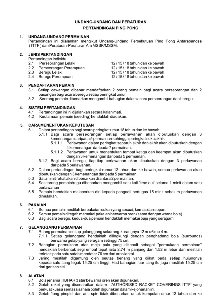 Syarat Dan Peraturan Permainan Pingpong Pdf